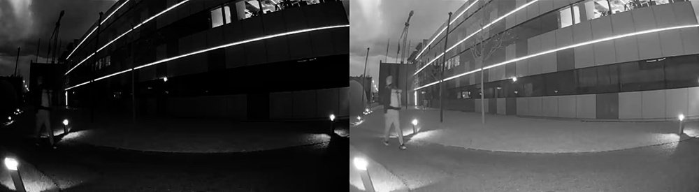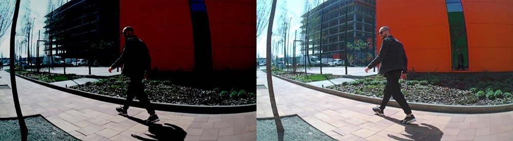 Чтобы сделать одно фото, камера MotionCam Outdoor делает два последовательных кадра с длинной и короткой выдержкой. Процессор мгновенно совмещает кадры, выравнивая баланс между светлыми и темными участками фото, после чего сжимает его для максимально быстрой передачи. Благодаря функции HDR датчик меньше задействует ИК подсветку в темное время суток, экономя заряд батареи.