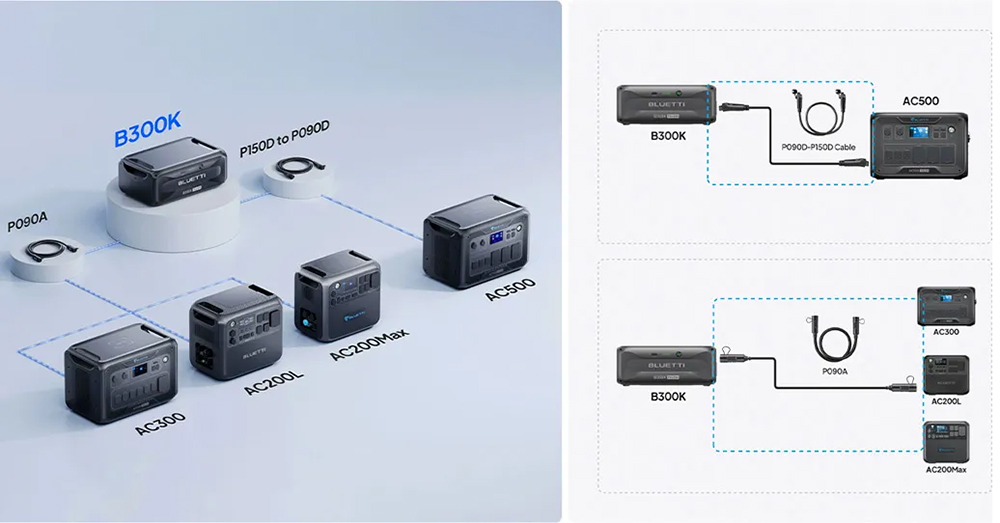 Bluetti B300K позволяет значительно расширить возможности вашей системы, подключая ее к AC500 и увеличивая общую емкость до 33168 Вт·ч. Это позволяет поддерживать множество устройств и систем даже в случаях длительных отключений электричества или повышенных энергетических потребностей. Такая мощность позволяет использовать батарею для больших домов, коммерческих объектов или сложных мобильных установок.