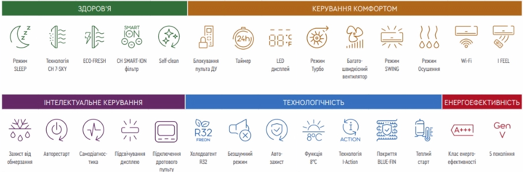 Высокотехнологичные компоненты Инновационный трансформатор, многоскоростной вентилятор, озонобезопасный фреон R32 и другие передовые решения делают этот кондиционер выдающимся в своем классе.