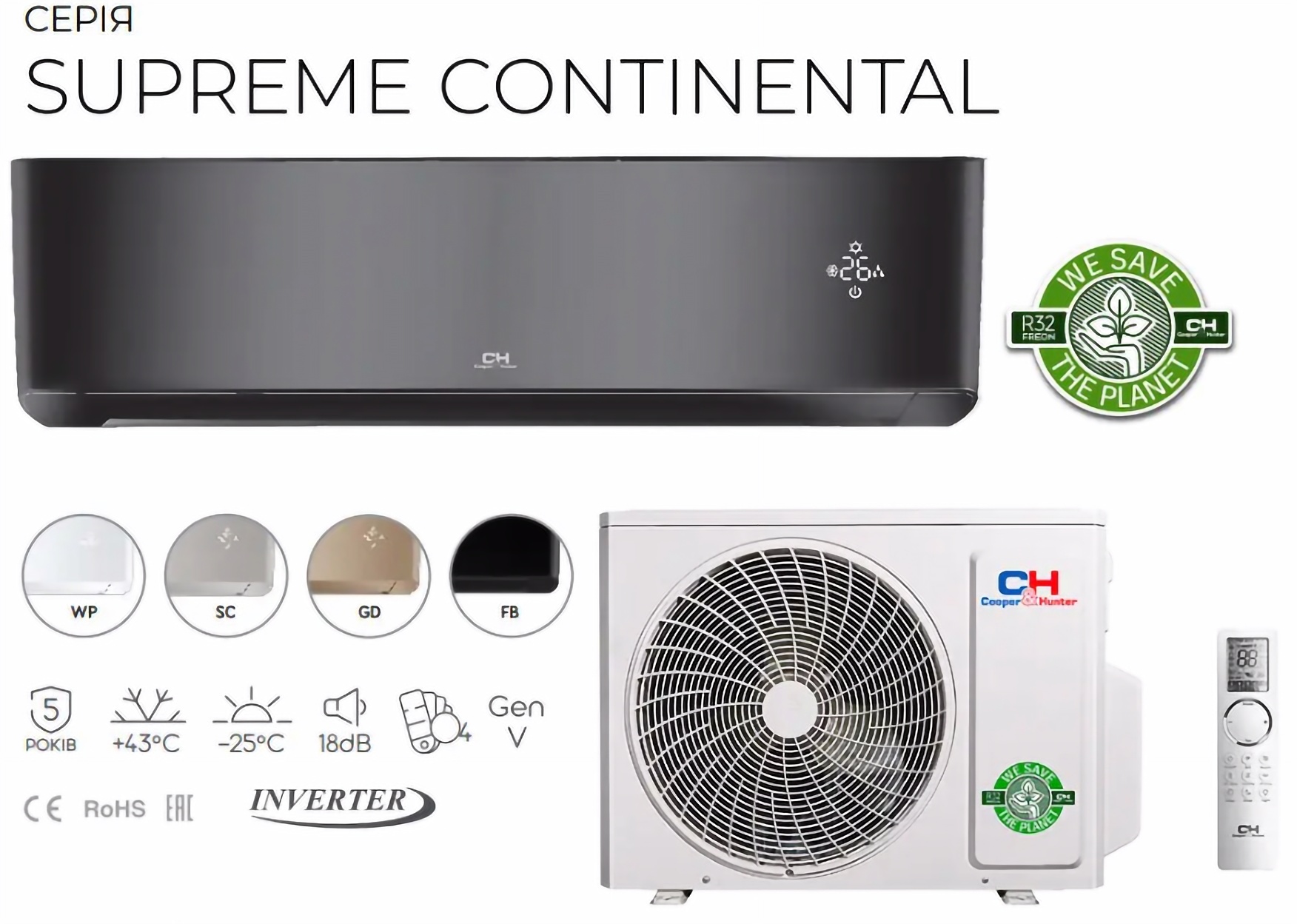 Особенности Cooper&Hunter CH-S18FTXAL2-FB Supreme Continental ( FULL BLACK) :