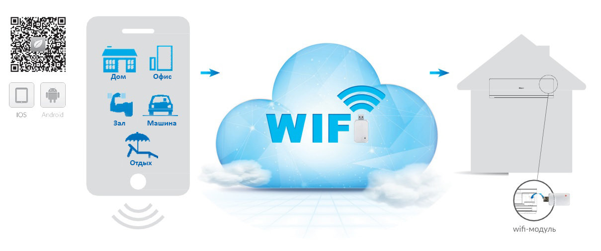 Полноценное управление кондиционером доступно из любой точки земного шара и предоставляет следующие возможности: