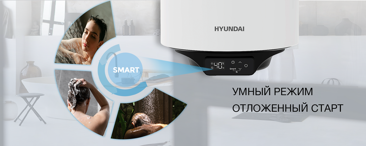 Бойлер HYUNDAI на 80 литров оснащен удобными функциями для автономного управления и экономного использования энергии. Режим Smart автоматически анализирует пользовательские привычки за неделю и настраивает работу устройства для большей эффективности.