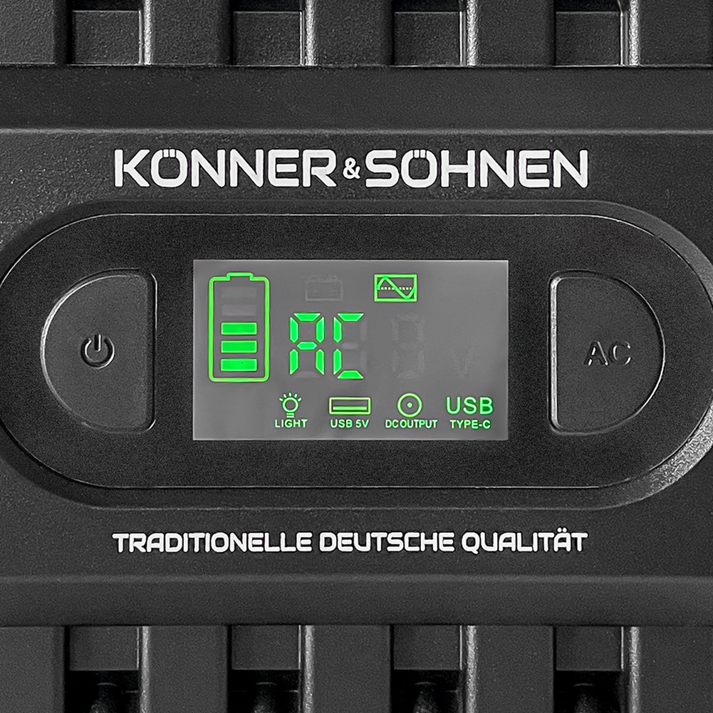 Все портативные зарядные станции Könner & Söhnen® оснащены технологией Power Delivery, обеспечивающей быструю зарядку аккумуляторов современных смартфонов и даже ноутбуков. Многопортовая, совместимая с множеством приборов и включает: 1 порт постоянного тока DC, 2 порта переменного тока AC, 1 порт быстрой зарядки USB PD Quick Charge 3.0, 2 порта USB 2.1, 1 порт USB Type-C, что удобно для питания различных электронных устройств.