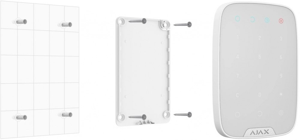 Бездротова сенсорна клавіатура використовується для зняття та встановлення на охорону системи безпеки Ajax. Встановлюється у приміщення біля вхідних дверей для швидкого доступу до клавіатури.