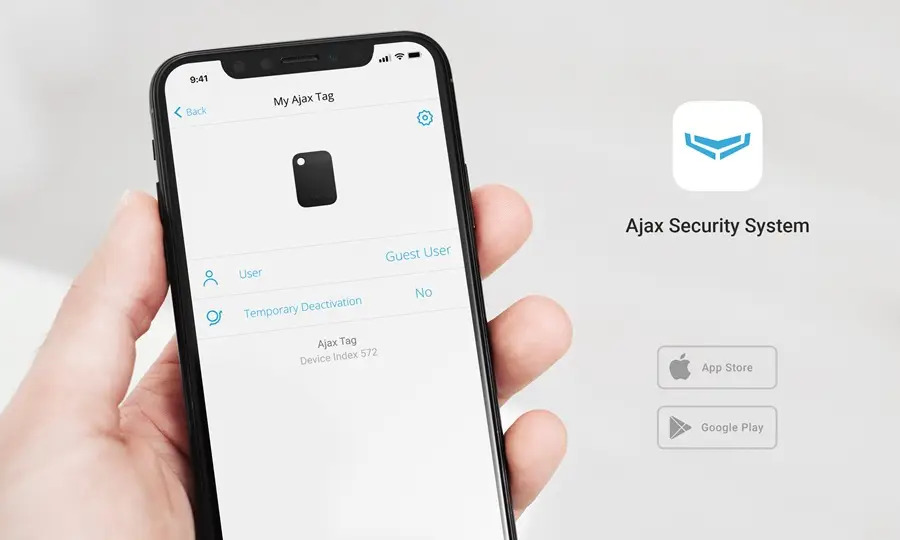 Брелок Tag дозволяє керувати охороною об'єкта без облікового запису, доступу до програми Ajax, знання пароля. Для зняття або постановки під охорону системи безпеки або певної групи достатньо піднести брелок Ajax Tag до сумісної сенсорної клавіатури Ajax KeyPad Plus.