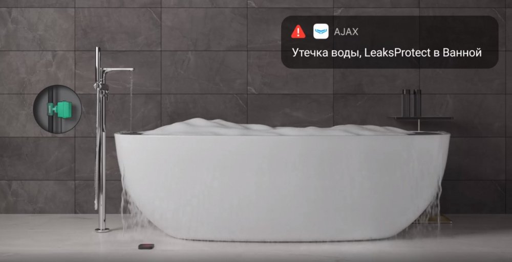 LeaksProtect можна розмістити навіть у важкодоступному місці. Він не вимагає монтажу, роками обходиться без обслуговування та працює 24/7. Якщо потіче пральна машина або прорве трубу, датчик миттєво відреагує та повідомить про аварію. І якщо на об'єкті реалізовано антипотоп-систему, Ajax автоматично перекриє воду.