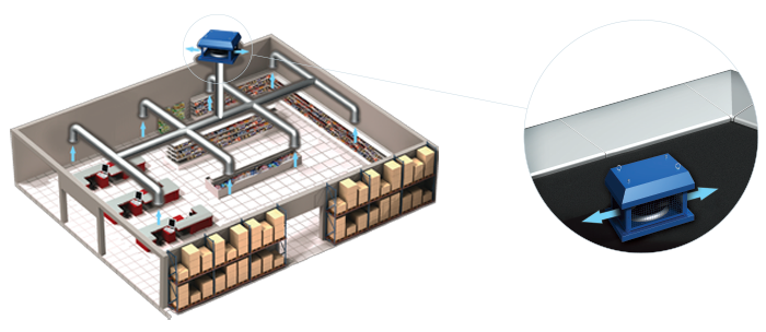 Витяжні системи вентиляції комерційних, офісних та інших громадських чи промислових приміщень, що потребують економічного рішення та керованої системи вентиляції.