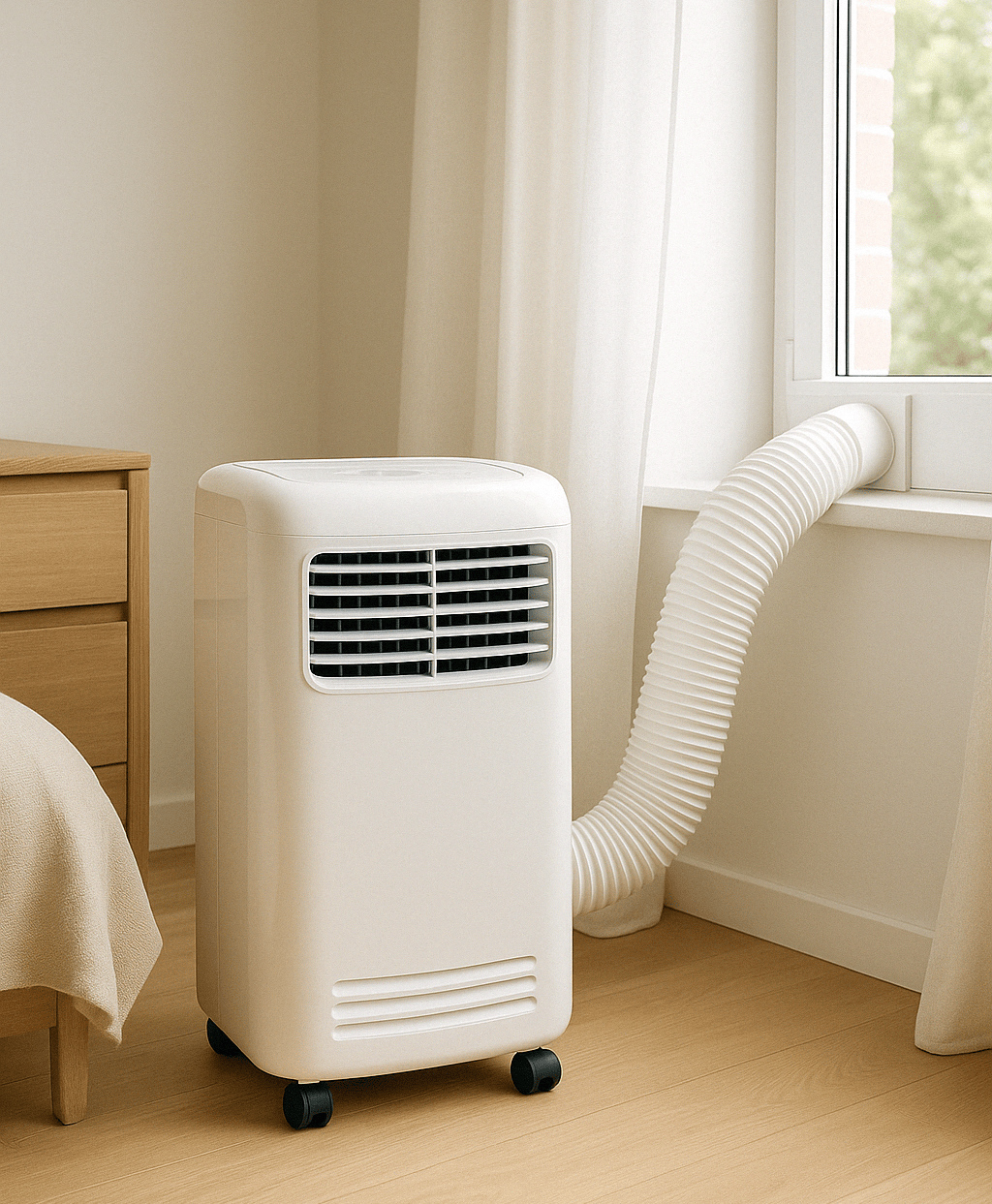 Зручність мобільних пристроїв - у їхній портативності та простоті: прилад можна використовувати там, де потрібен у цей момент, і прибрати на зберігання, коли прохолода не потрібна. Вони особливо актуальні для випадків, коли встановлення спліт-системи неможливе (наприклад, у орендованій квартирі, де не можна свердлити стіни, або в історичній будівлі із забороною на зовнішній блок). Також мобільний моноблок виручить, якщо потрібно тимчасово охолодити приміщення - наприклад, на дачі в спекотний місяць, без монтажу капітального обладнання. Під час переїзду його можна забрати з собою. Встановлення гранично просте: вставити гофротрубу в доданий плоский адаптер і затиснути її у вікні. Деякі моделі навіть комплектуються спеціальними насадками для різних типів вікон.